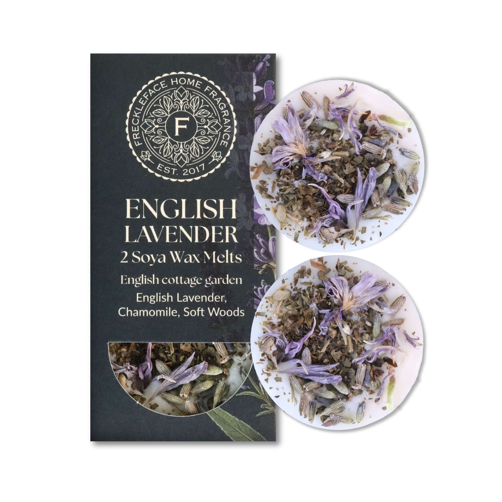 Each duo box contains 2 handmade soya wax melts, delicately topped with dried botanicals - delivering up to 40 hours of beautiful fragrance.