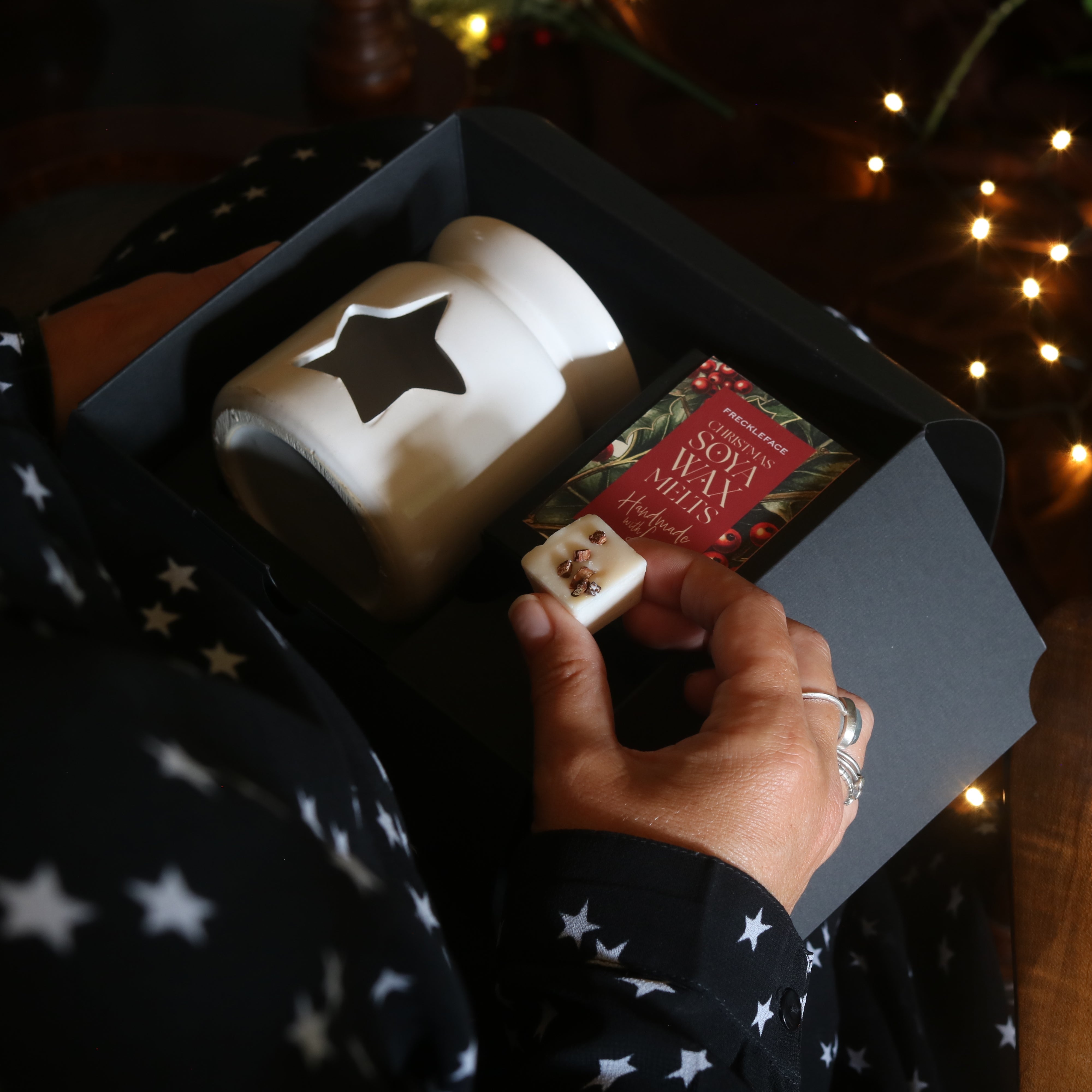 This charming gift set includes a white ceramic star melter, along with six handcrafted soya wax melts in two festive fragrances: Christmas Star and Winter Nights.